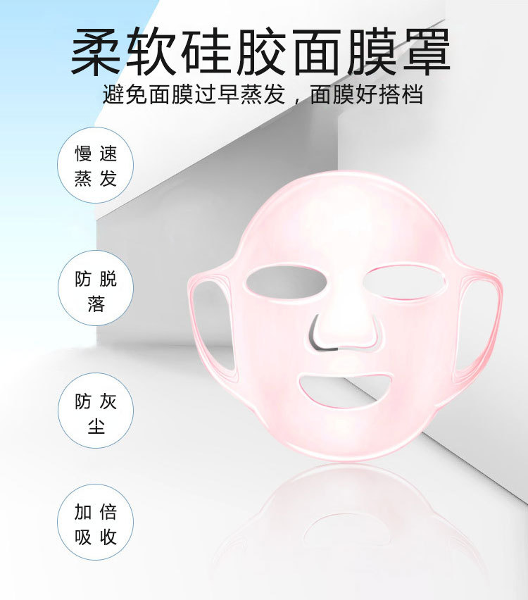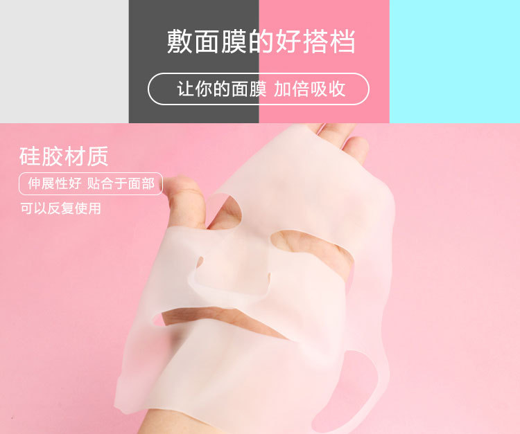特點(diǎn):環(huán)保硅膠材質(zhì),反復(fù)清洗使用,伸展性良好,貼合臉部有效防止面膜精華和水分過(guò)早蒸發(fā),影響吸收;面膜罩耳掛設(shè)計(jì),有效防止面膜移位或脫落,適合各種臉型。