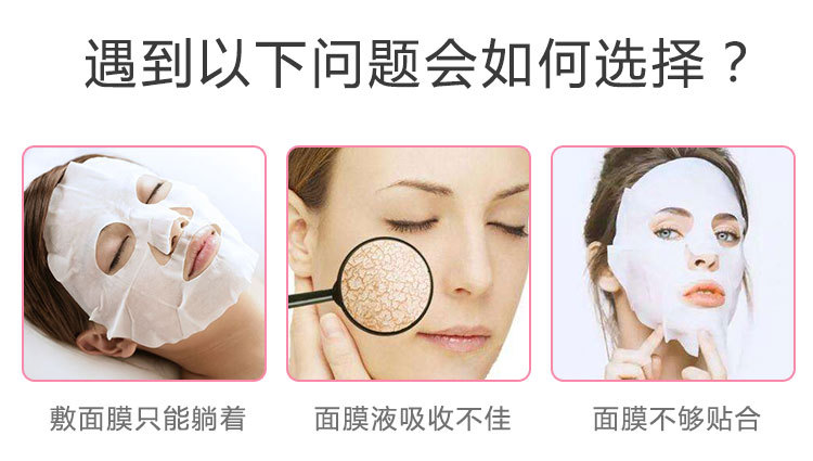 先敷上面膜,再將硅膠面膜罩罩在面膜上,等待15~20分鐘之后取下,可以使面膜精華液更充分吸收。